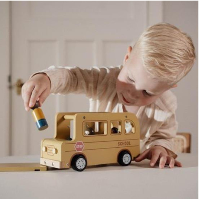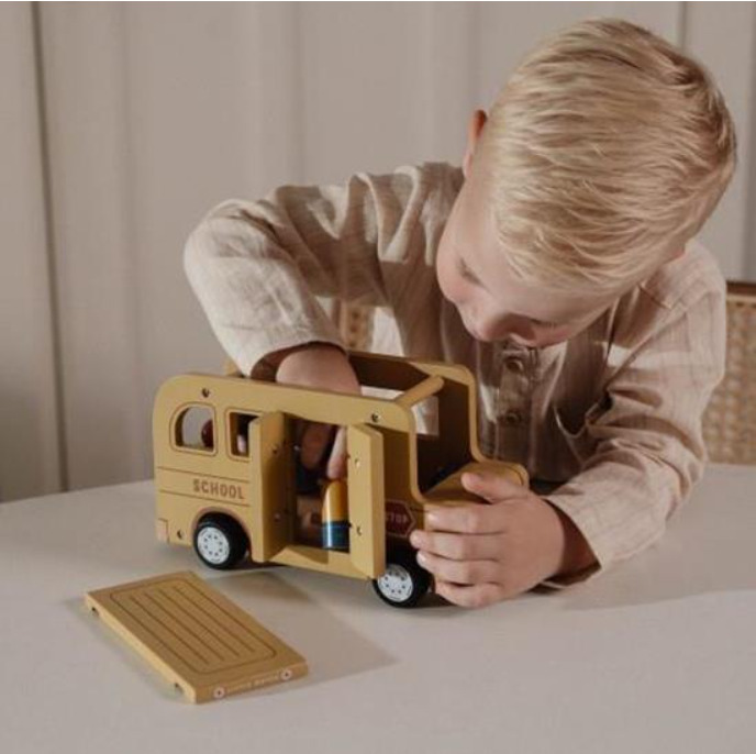 Die Tür und das Dach des Holzschulbusses lassen sich öffnen, und die Puppen passen perfekt zu anderen Spielsets wie dem Puppenhaus, dem Flugzeug und dem Wohnmobilauto. Lass dein Kind mit diesem vielseitigen Holzspielzeug eine Reise voller Geschichten und Abenteuer erleben!